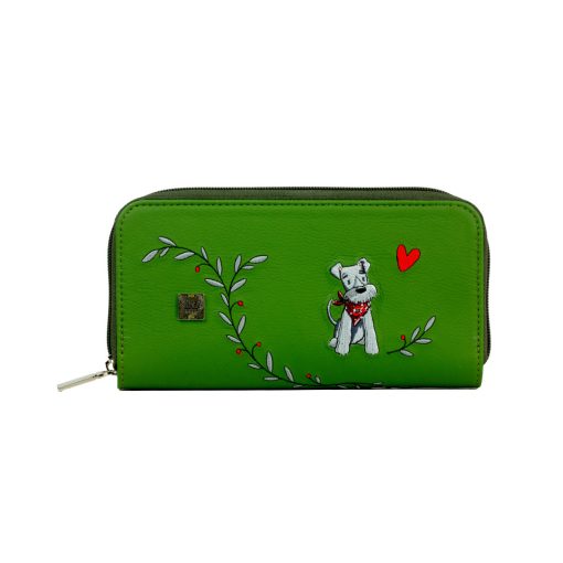 Elin hímzett pénztárca oliva / hímzett kutyus