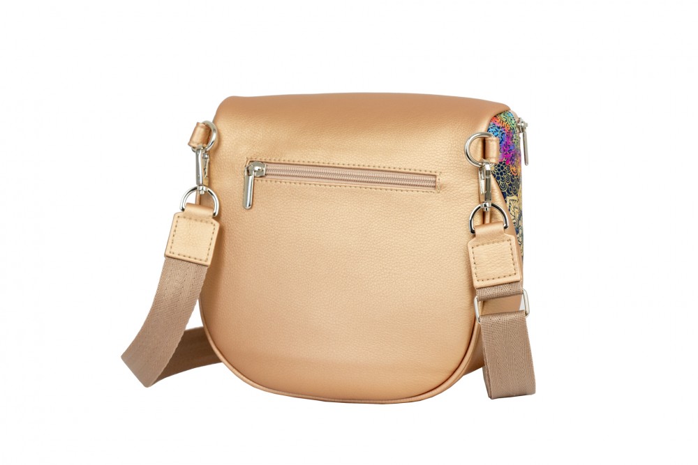 Anyaga magas minőségű textilbőr és vízlepergetős anyag, bélése vízlepergető. Egyterű, kívül (hátul) és belül cipzáros zsebbel. Teteje cipzárral záródik. Vállpántja szatén heveder. Táska mérete 21x22x10cm, pántszélesség 30mm, pánthossz állítható 75-135cm-ig. Belső cipzáros zseb 13x12 cm, külső cipzáros zseb 13x12cm.