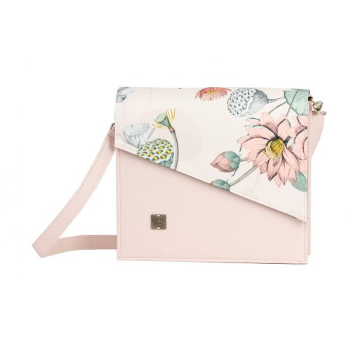 Anyaga magas minőségű textilbőr és vízlepergetős anyag, bélése vízlepergető. Válltáskaként és keresztbe is hordható. Belül egyterű, kívül(hátul) és belül cipzáros zsebbel, mobiltartóval. Fedele cserélhető, patentos. Vállpántja lecsatolható karabíneres. Fedele mágneszárral záródik. Táska mérete 25x23x6,5 cm, pántszélesség 20 mm, pánthossz állítható 74-136cm-ig, belső cipzáros zseb 15x13 cm, külső cipzáros zseb 15x12 cm, mobiltartó 10,5x8,5 cm.