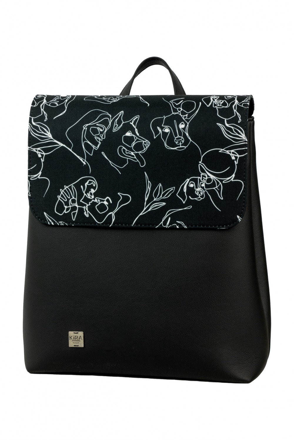 Kora maxi cserélhető fedeles hátizsák fekete/ kutyás