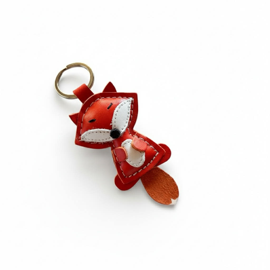 Róka figurás bőr kulcstartó