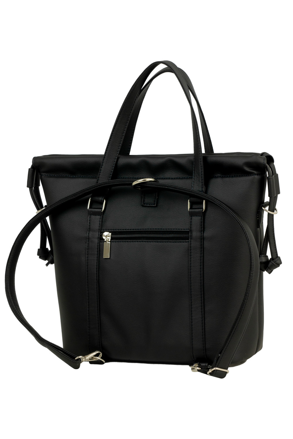 Anyaga magas minőségű textilbőr és vízlepergetős anyag, bélése vízlepergető. 3 mm-es szivacs gondoskodik a táska puha tapintásáról és tartásáról. Háti-, váll- és kézitáska. Egyterű, cipzáros zsebbel és mobiltartóval. Kívül hátul cipzáros zsebbel, elől mágneszáras zsebbel. Tetején cipzárral záródik, vállpántja levehető karabineres. Alját fenékszegek védik. Táska mérete 31x37x11 cm, pántszélesség 20 mm, vállpánt állítható 70-139 cm-ig, kézipánt a táska tetejétől 13 cm, hátipánt állítható 37-60c m-ig. Külső cipzáros zseb 13x13 cm, külső mágneszáras zseb 14x15 cm, belső cipzáros zseb 15x12 cm, mobiltartó 10,5x8,5 cm.